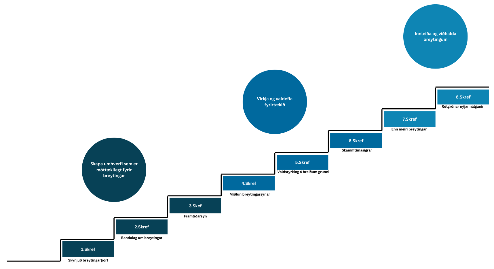 Mynd: Ein af þaulreyndum aðferðum við breytingastjórnun er 8 þrepa breytingaferli Kotter‘s